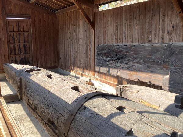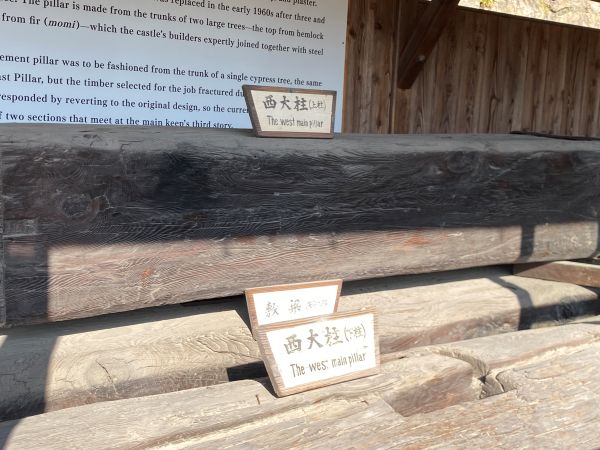 ここに展示しているのは旧西大柱で大天守の地階床から六階床までの各階を貫き