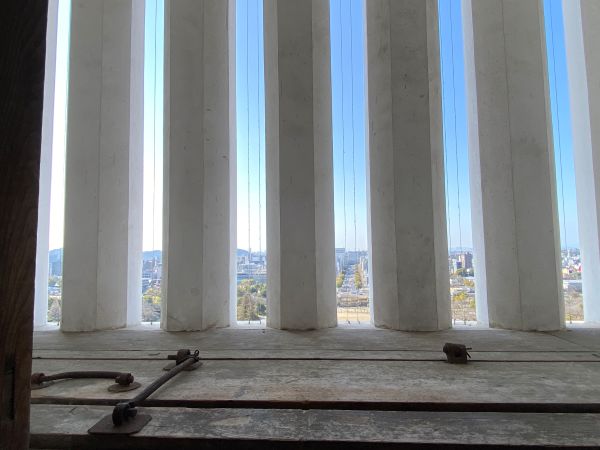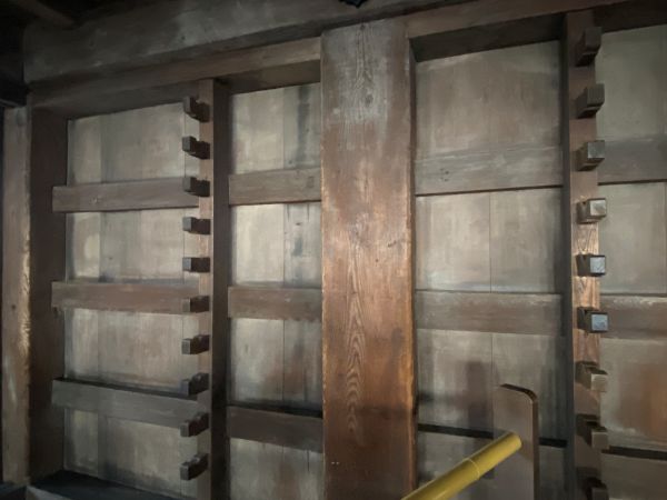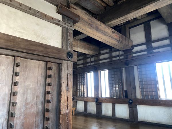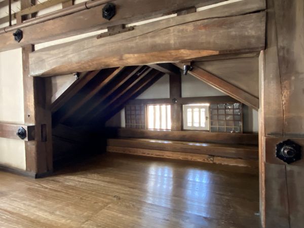 天守入り口にかかる入母屋破風の屋根裏の空間