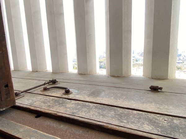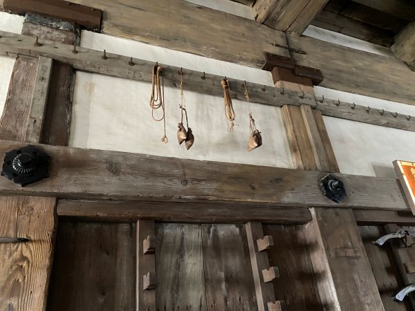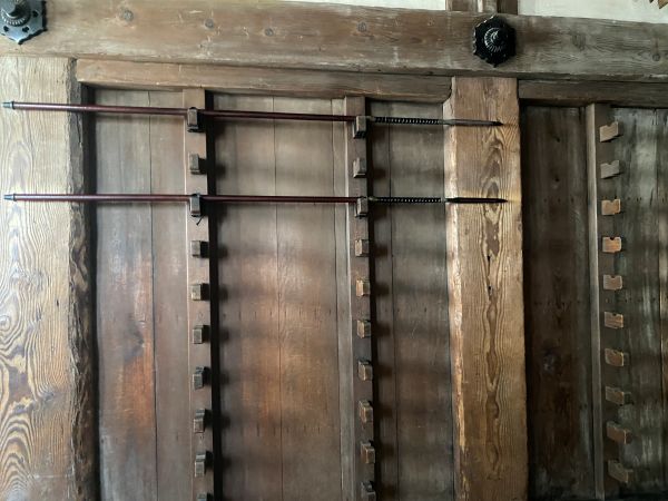 武者走り六葉釘隠しの更に上に竹で作られた「用具掛け」がある