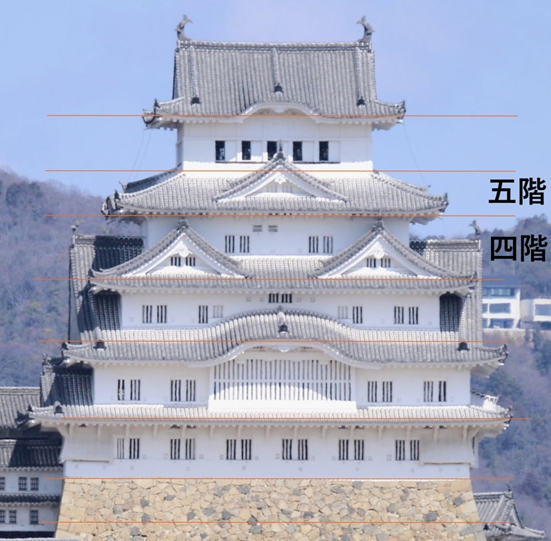 姫路城は外観は五重だが内部は地上六階、地下一階の七階建て。