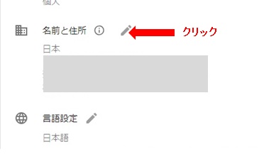 「お支払いプロファイルの」中にある「名前と住所」の部分のペンマークをクリック。