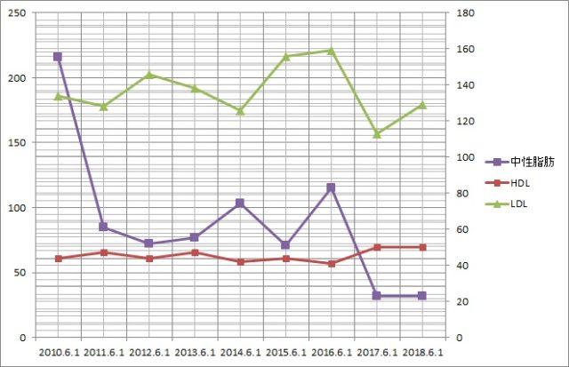 LDL(悪玉)コレステロール値は昨年よりも少し増えた。