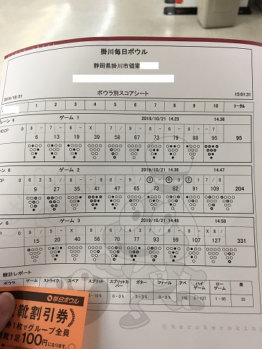 3ゲーム1100円プラス貸し靴300円で1400円。