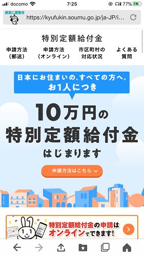 今月初めに特別定額給付金のオンライン申請がスタートした。