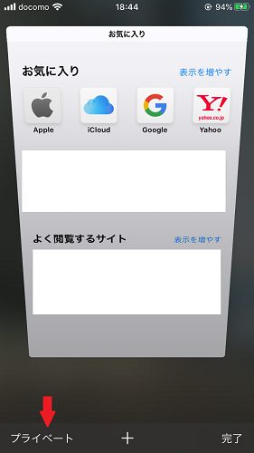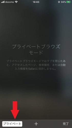 4.このような状態になっていたら「プライベートブラウズモード」なので