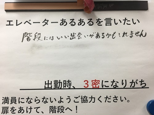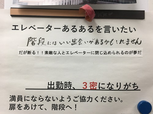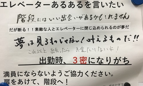 前からエレベータ内にこんな紙が掲示してあり