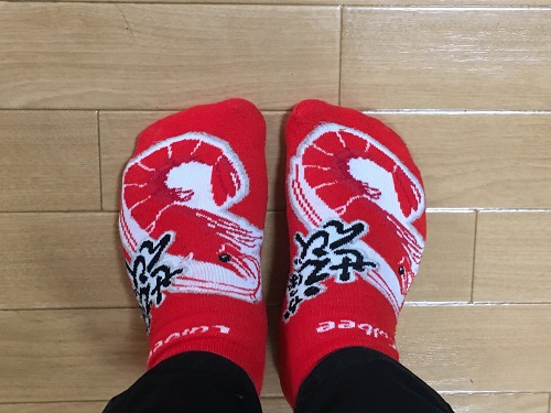という事で2ヶ月後、今度は「ワサビ」の靴下を履いていった。