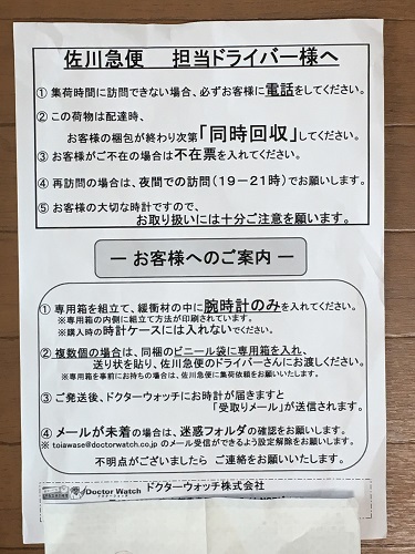宅配業者が自宅に時計を入れる箱を持ってきてくれるので