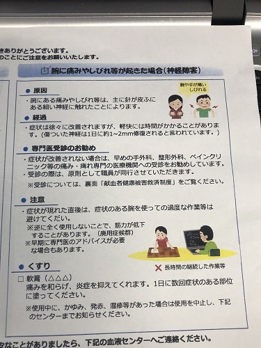 健康診断などで針を刺した直後に「指先は痺れていませんか?」と必ず聞かれるけど