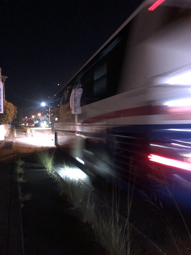 暗い道を歩き、幹線道路沿いのバス停へ。