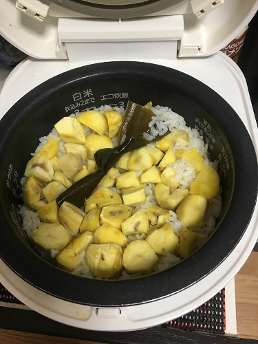栗ご飯用の栗を「栗くり坊主」で剥き