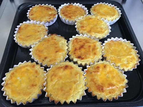 5.成形して(もしくは型に注ぎ入れ)卵黄をハケで塗る。