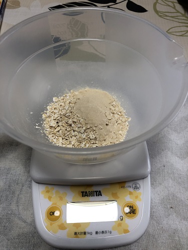 1.ボウルにオートミールとサイリウムと水を入れてよく混ぜる