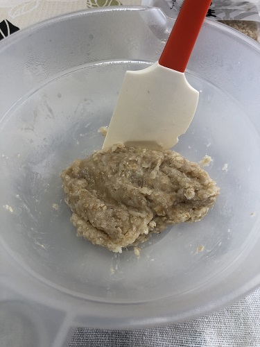 〇水分量が少ないあんこの場合、丸めたオートミール生地をほぼ同じ大きさに丸め