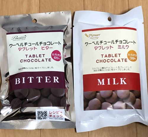 「ミルクチョコレート」と「ビター」の2種類をネットで購入。