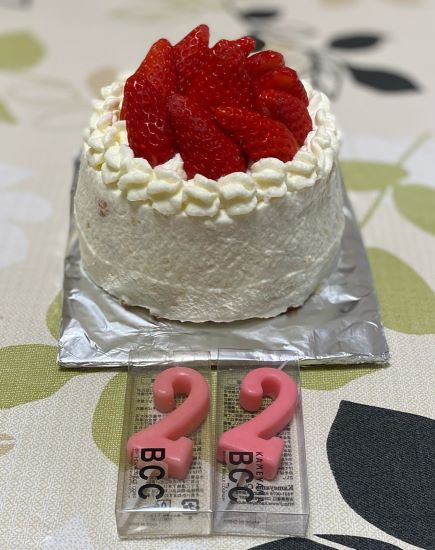 11.生地が冷めたら半分にカット、飾りつけをして完成。