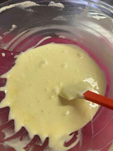 (ハチミツ+バター+牛乳を溶かしたものを少量の生地に混ぜてから