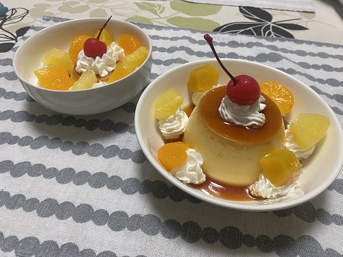 10.お好みで生クリームやフルーツを添えてプリンアラモード風にする