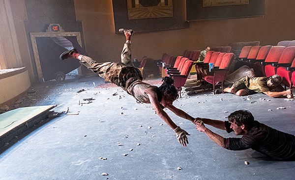 流れたままの映画と崩れ落ちる天井や吹き飛ばされる人々との対比が