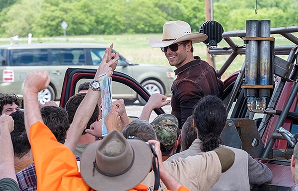 ロデオのショーを見ている最中に襲来した竜巻から逃げるシーン、