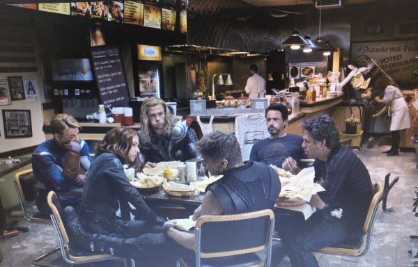 エンドロールの後にアベンジャーズのメンバーが黙々と食べている描写がある。