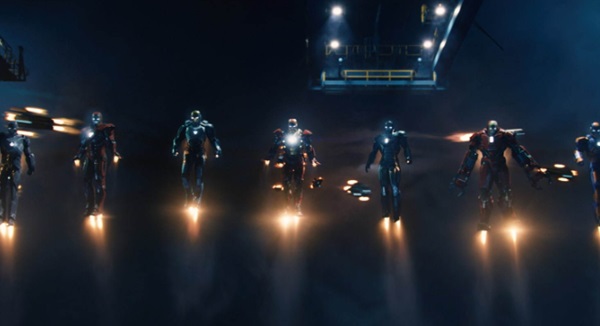 トニーは今まで製造したアーマー全てを現場に召喚し総攻撃をかける。