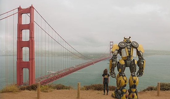 ゴールデン・ゲート・ブリッジの前でチャーリーはバンブルビーに