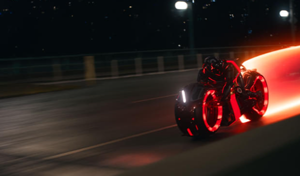アニメーションCGみたいなライトサイクル、直角に曲がっていく軌跡