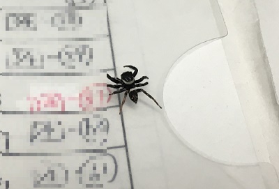 ハエトリグモは管理人のデスクを横切ってどこかへと行ってしまった。
