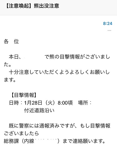 「熊出没注意」のメールは初めてだ。