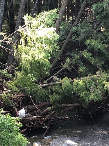 谷をみると土砂崩れで木が何本も川に落ちてしまっていた。