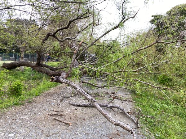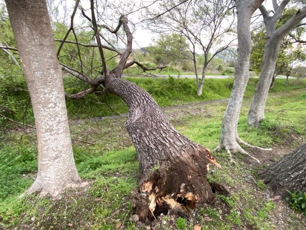 柳はしなやかで風に強いイメージがあるが、実際は大風で倒れやすいという。
