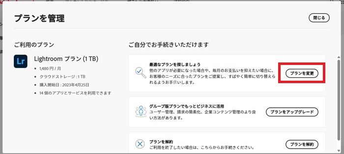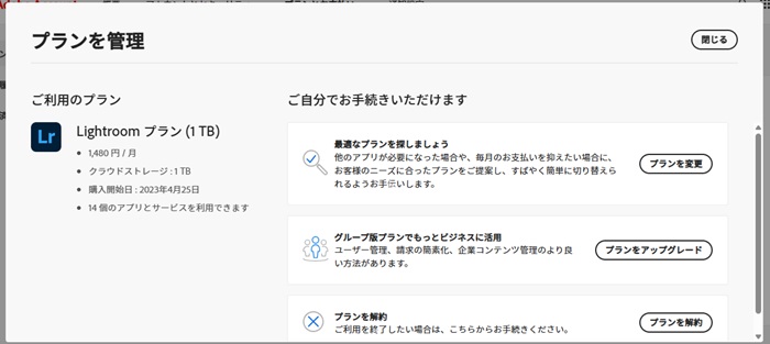Lightroomを使わないので、Adobeのサブスクを解約することにした。