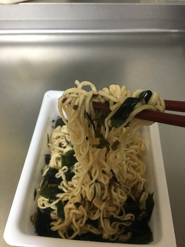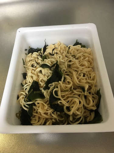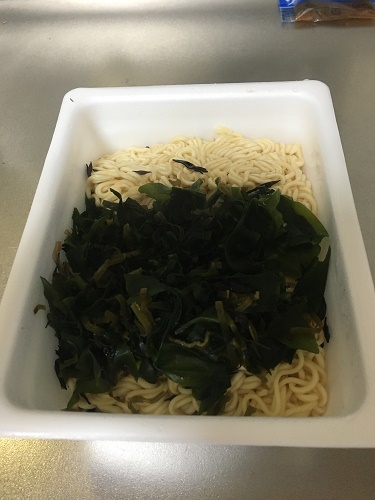 かやくをざっと麺の上に出し、お湯を注ぐ。