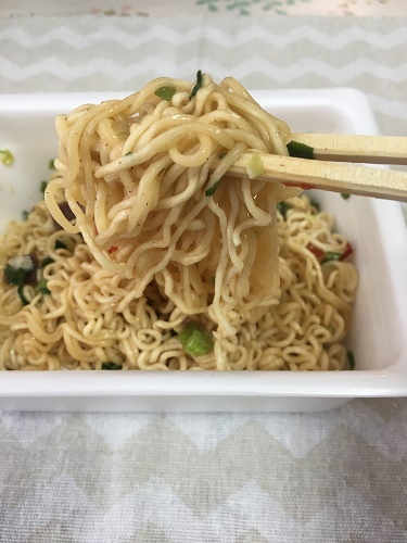 ゴマ油の香り、塩味は少し強めでトウガラシも効いていてピリっとする。
