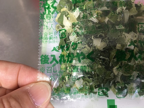 しかし、緑色の袋に緑色で「後入れかやく」と書いてあっても