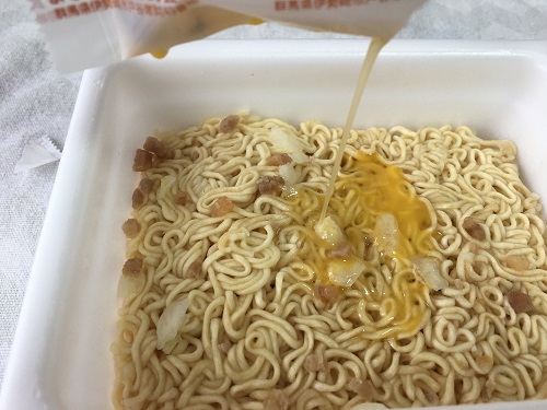 でも、カルボナーラソースって黄色いからヘンじゃないか、と納得。