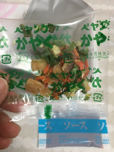 かやくは「豚バラ肉、ニンジン、ニラ」