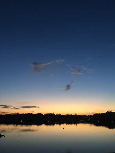 この日は夜明けの雲が湖に反射してとてもキレイだったよ。