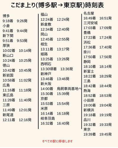 ドクターイエロー(こだま計測)の博多から東京までの到着時間と出発時間が