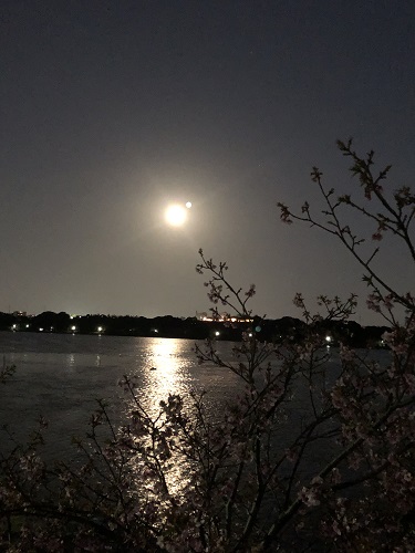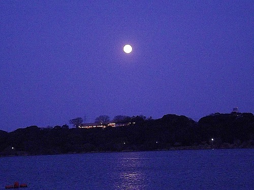 たまには別の場所から撮ってみよう……と月の出る時間に合わせて出かけてみる。