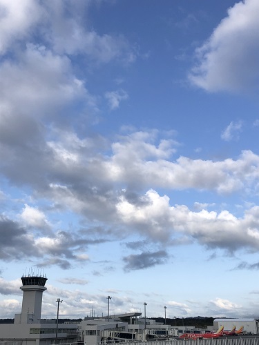 飛行機が離陸する方角の東の空は雲がいっぱいだった。