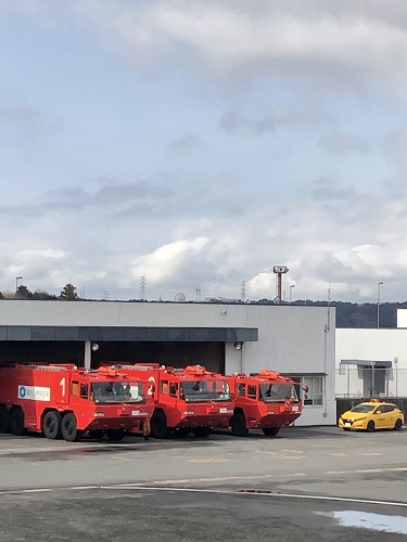 そして空港専用の消防自動車もサイレンを鳴らしていたり