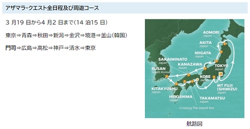 (全長180m、全幅25m、喫水6.0m、総トン数30277トン、乗客定員694人、乗組員数390人、