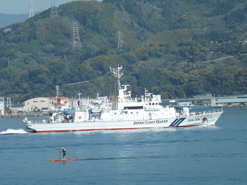 海上保安庁の巡視艇(?)が通り過ぎていった。