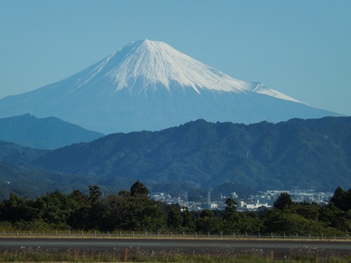 雲一つない空と雪が積もった富士山が目の前に見える。