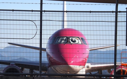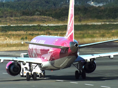 そして帰ろうと思ったらピンク色の機体がけん引されている。