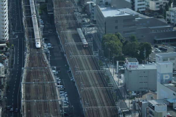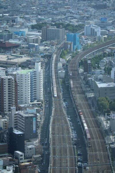 新幹線がひっきりなしに通過する。