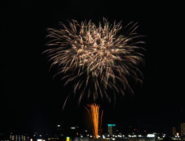 次の日も市内で花火大会があったので、遠くから撮ってみた。