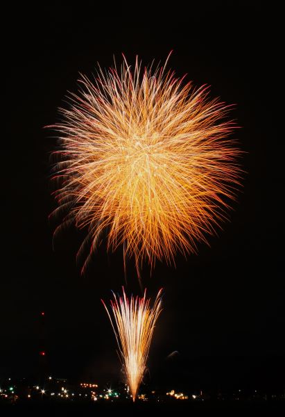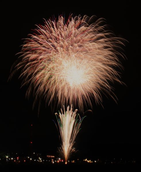 スターマインの後の花火はとても大きく、これまた画角に入りきらない!